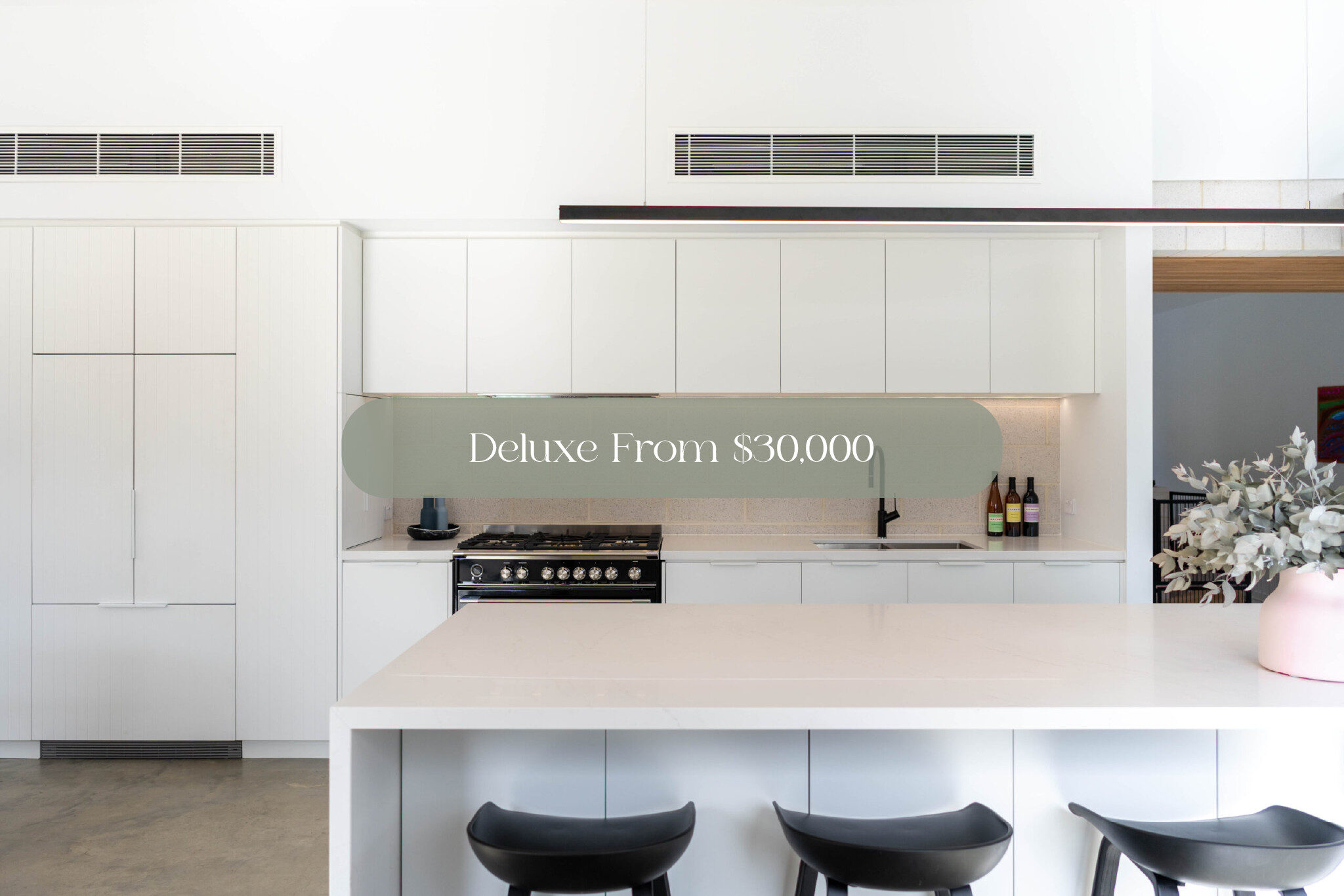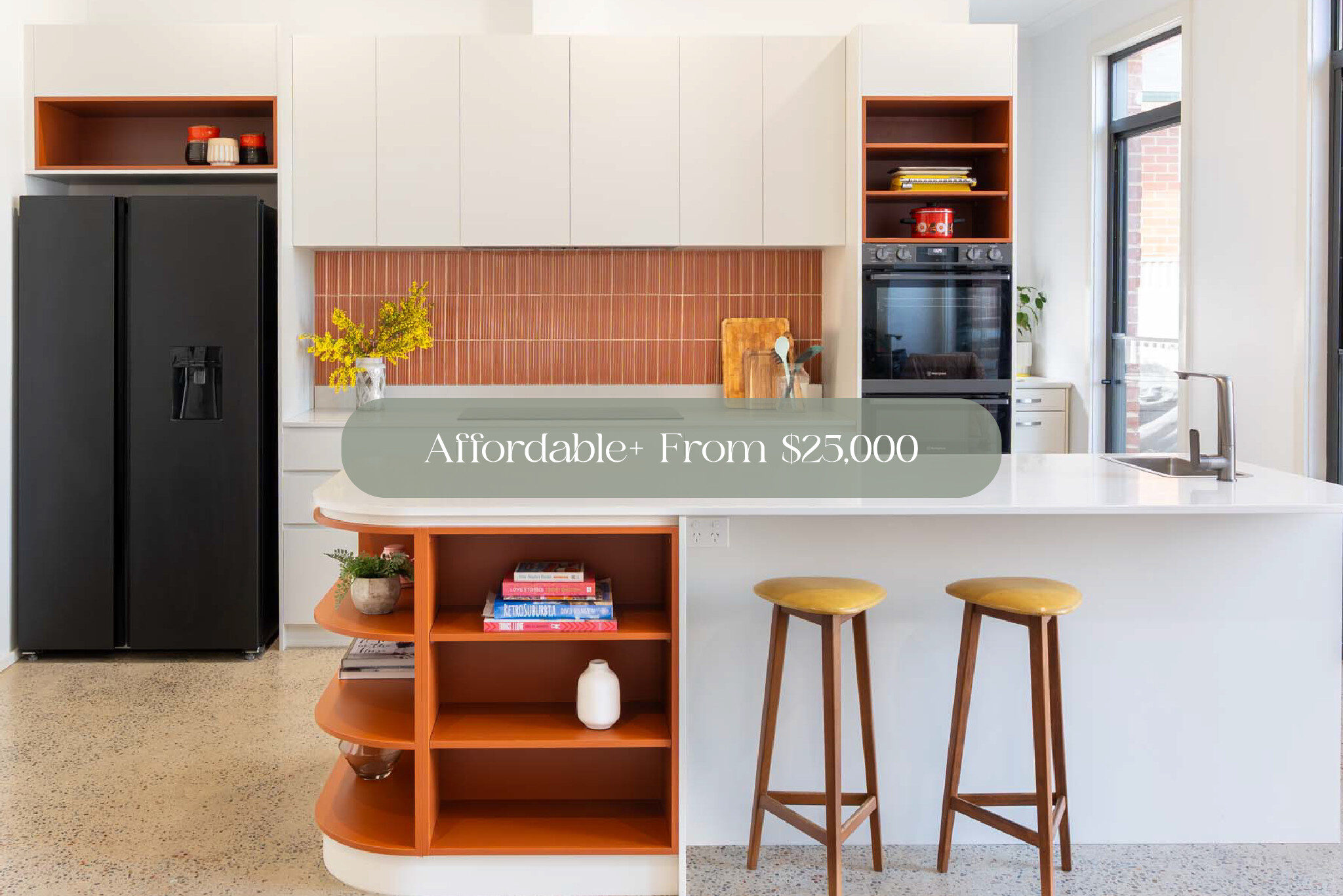 Use the below for an idea of where your investment fits. These guides include cabinetry, benchtops, full design and selections service, end-to-end project management, and installation. Appliances, splashback, and trade work can be added at an additional cost, or arranged independently by the client.