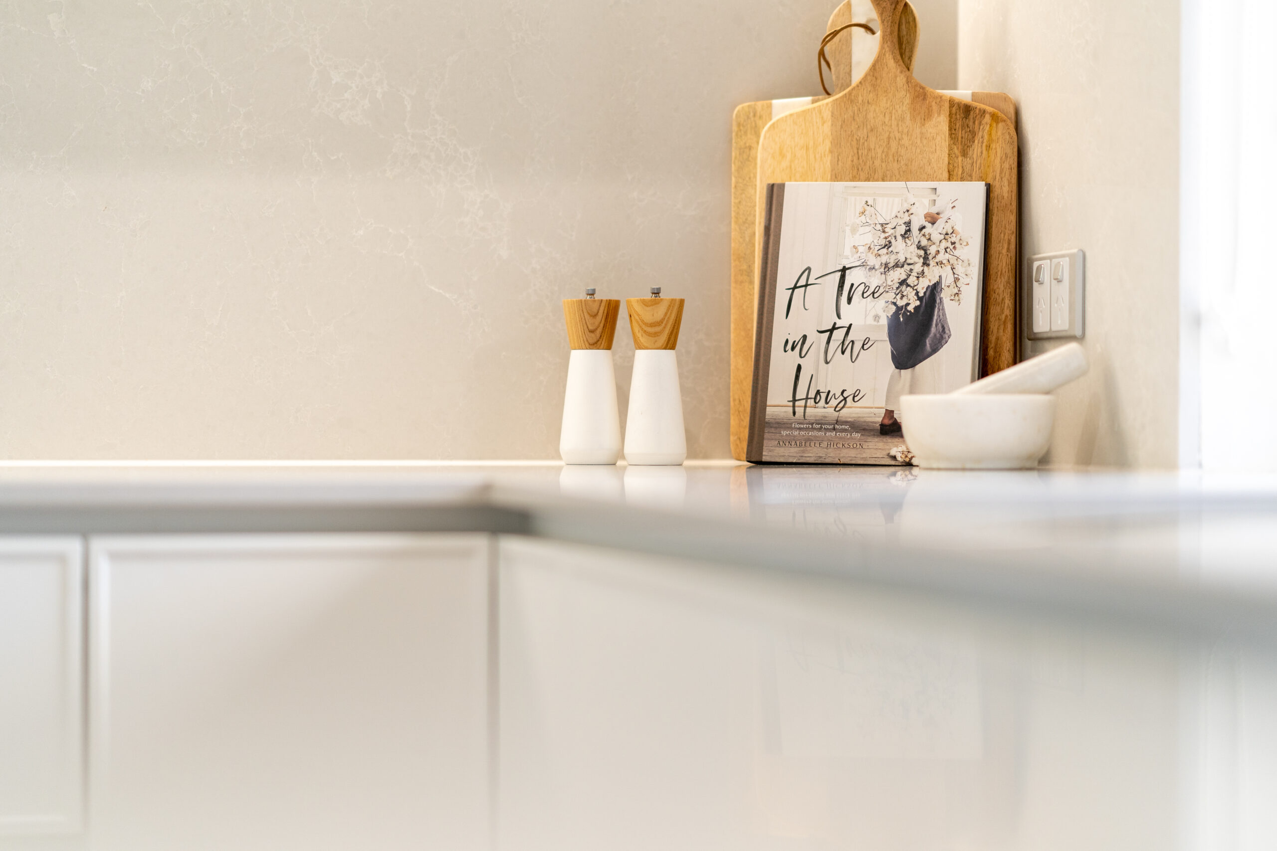 For the kitchen benchtops, a solid surface material like Zenith in a modest 20mm thickness can give the overall space a sophisticated look and feel at a surprisingly affordable price point.